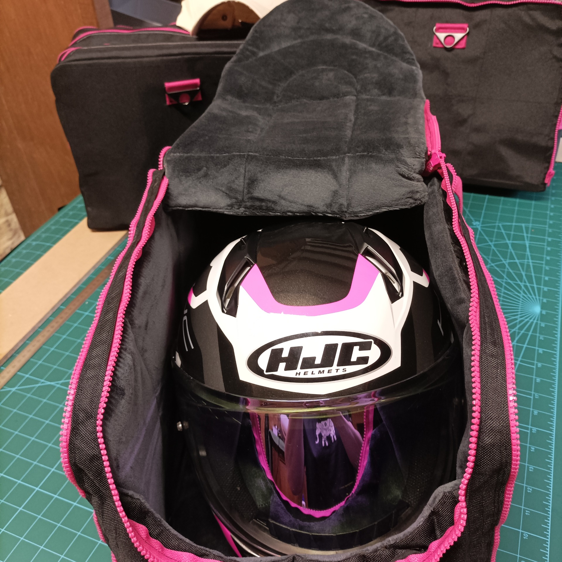 La version cuir du sac pour casque (version personnalisée pour Evelyne François (pilote, coach, formatrice)
